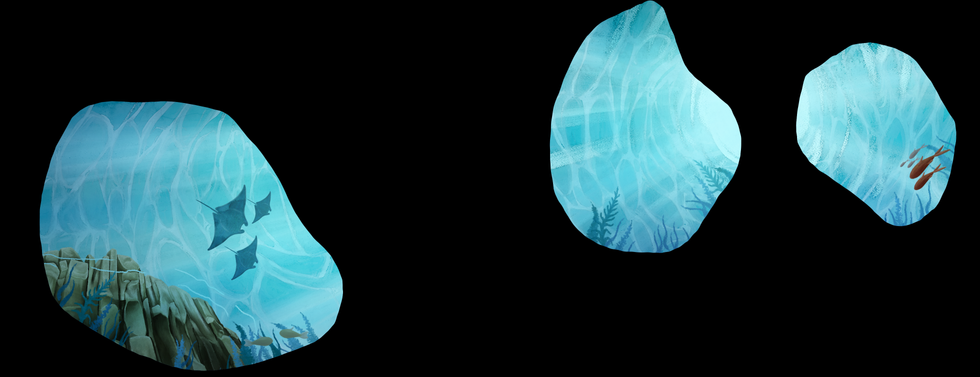 For the ceiling in the Flamingo Crossing area, we created a set of sea life and silhouettes that gave the viewers a unique perspective of some Disney characters and scenes.