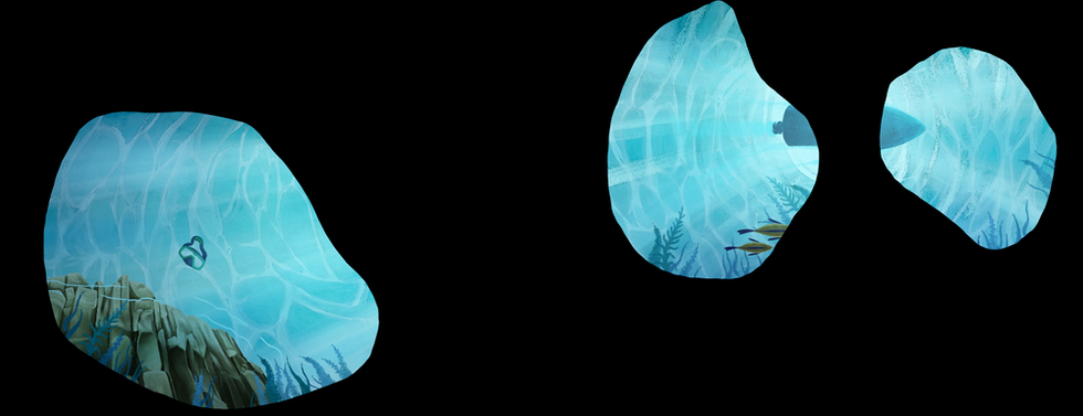 The kelp forest animation that plays when the screens are inactive were set to change colors at different times of day—dawn, daytime, dusk and nighttime—and contimue to loop through.