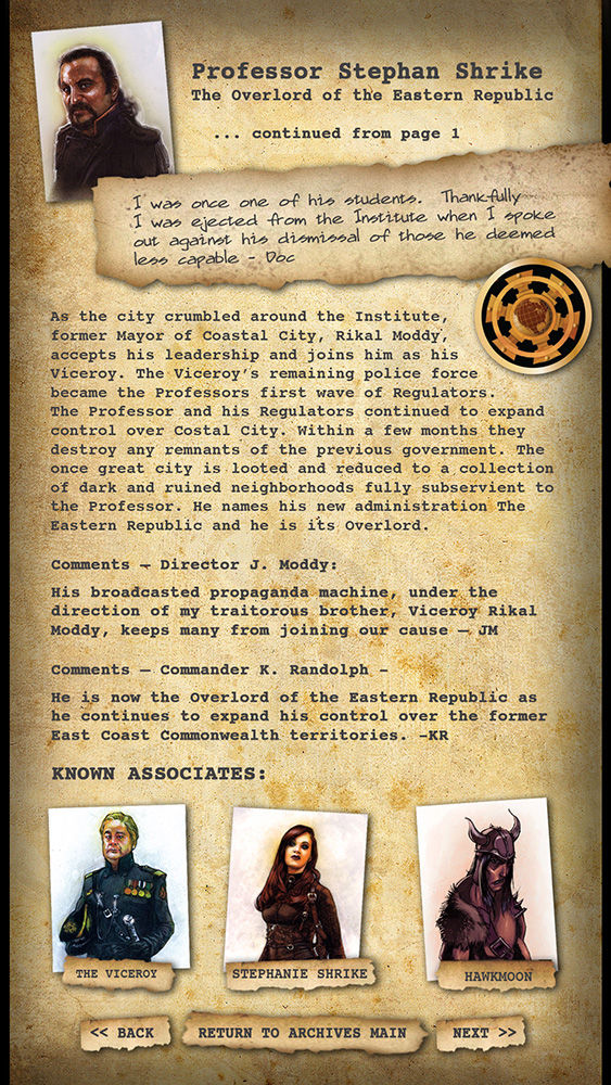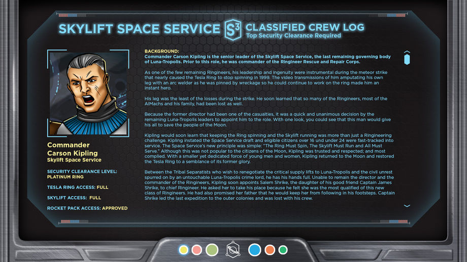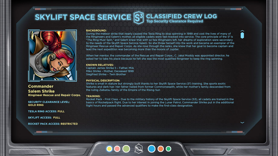 As a wealthy bureaucrat, Sigfried is the primary shareholder in Shrike Sky & Space and the governor of Luna-Tropolis.