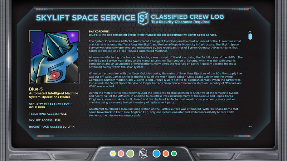 Every great story needs strong heroes to cheer for, villains to vanquish and circumstances that keep the reader on the edge of their seats waiting to see what will happen next. This is our unique blend of characters created for our retro sci-fi themed space adventure aboard the Skylift Space Station.