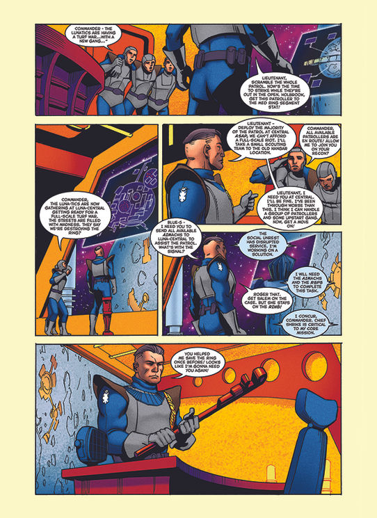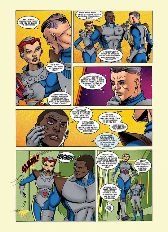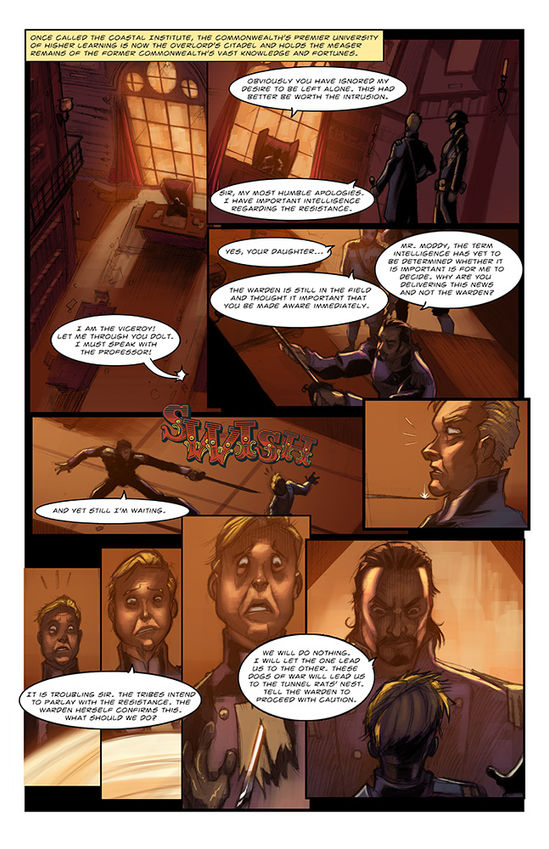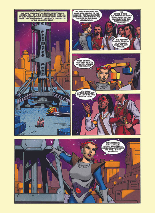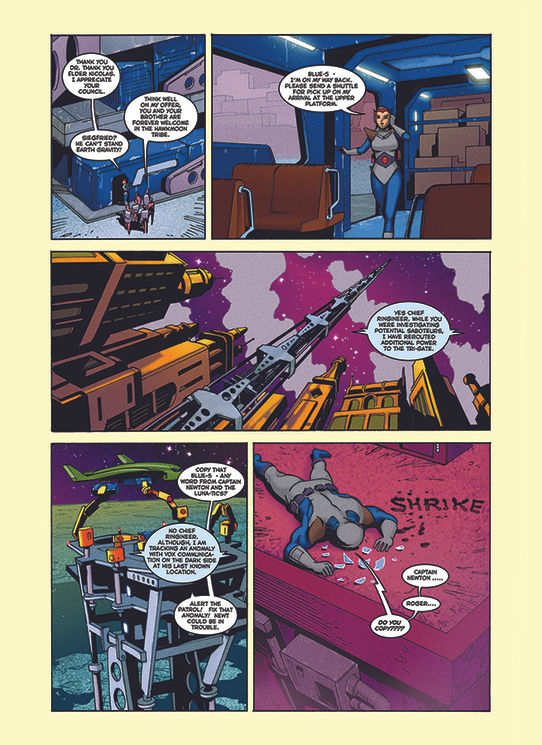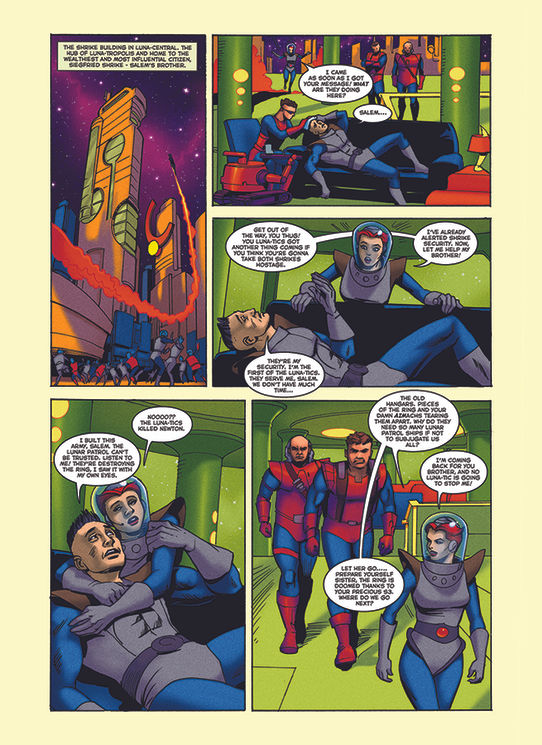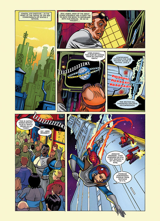 The comic book panels, shown here, were the third set of comics developed as part of a trilogy for the Intel Retail Edge Program summer training campaign. This year's story focused on an ancient city that housed a strange artifact serving as a hub for all Tri-gate portals. It's here that Doc Lieber and Salem Shrike establish The Academy— the learning center for advanced technological learning.