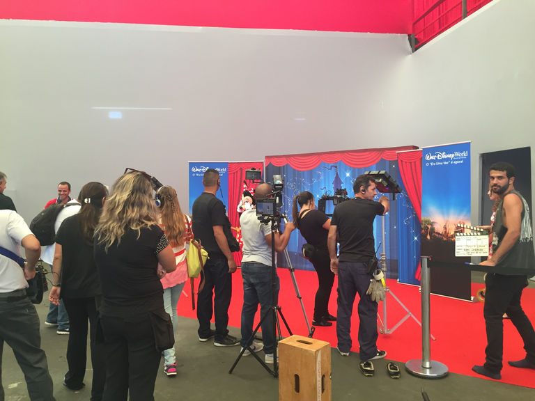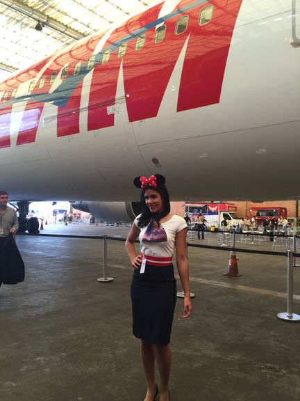 TAM Airlines, a Brazilian airline, was excited to host a Press event to announce that they would be launching direct flights from Brazil to Orlando, FL primarily due to the guest interest in visiting Walt Disney World. So we partnered to host this event in a hangar in Sao Paulo and reveal a fully wrapped plane that featured some of our favorite Disney characters.